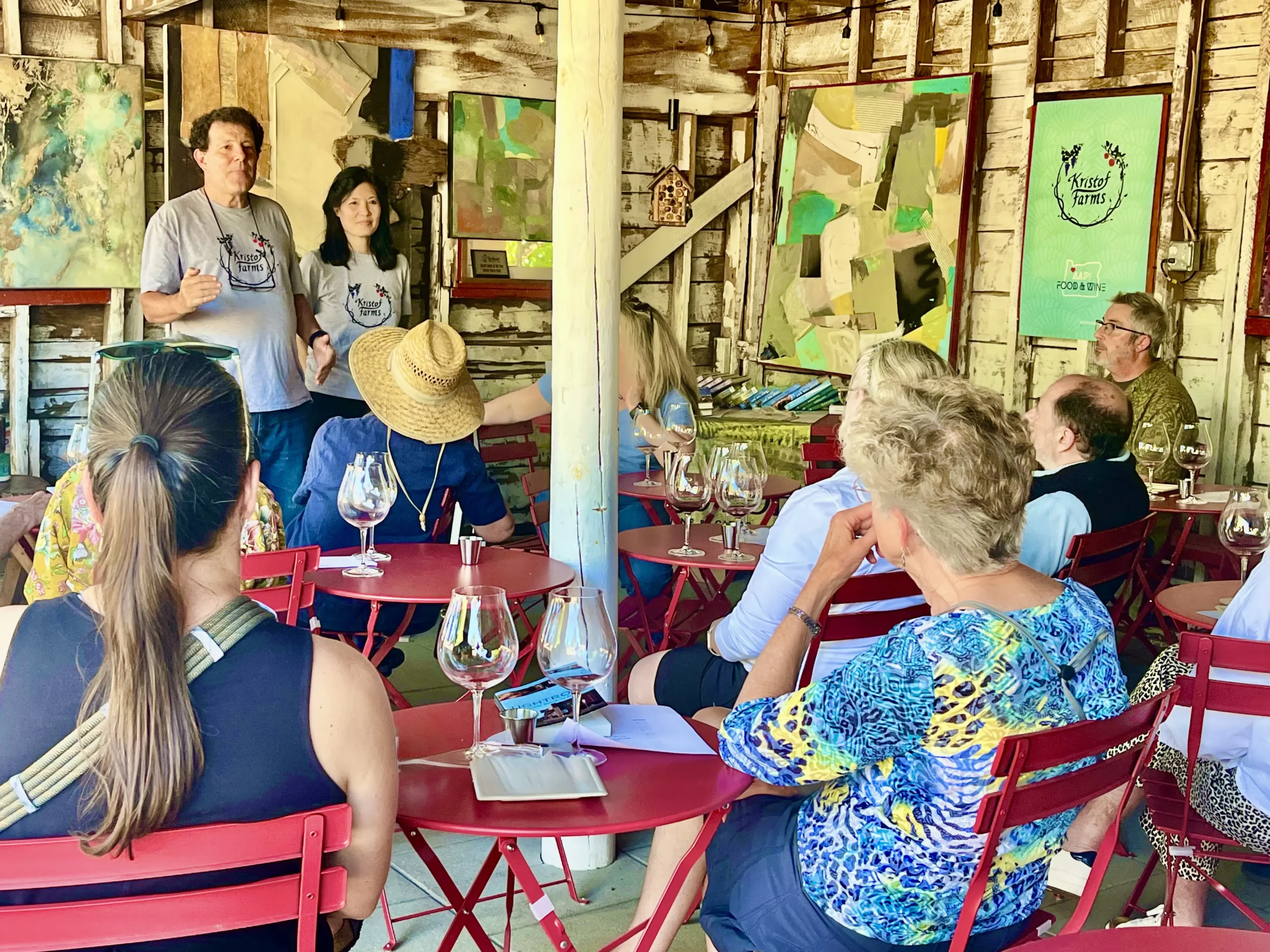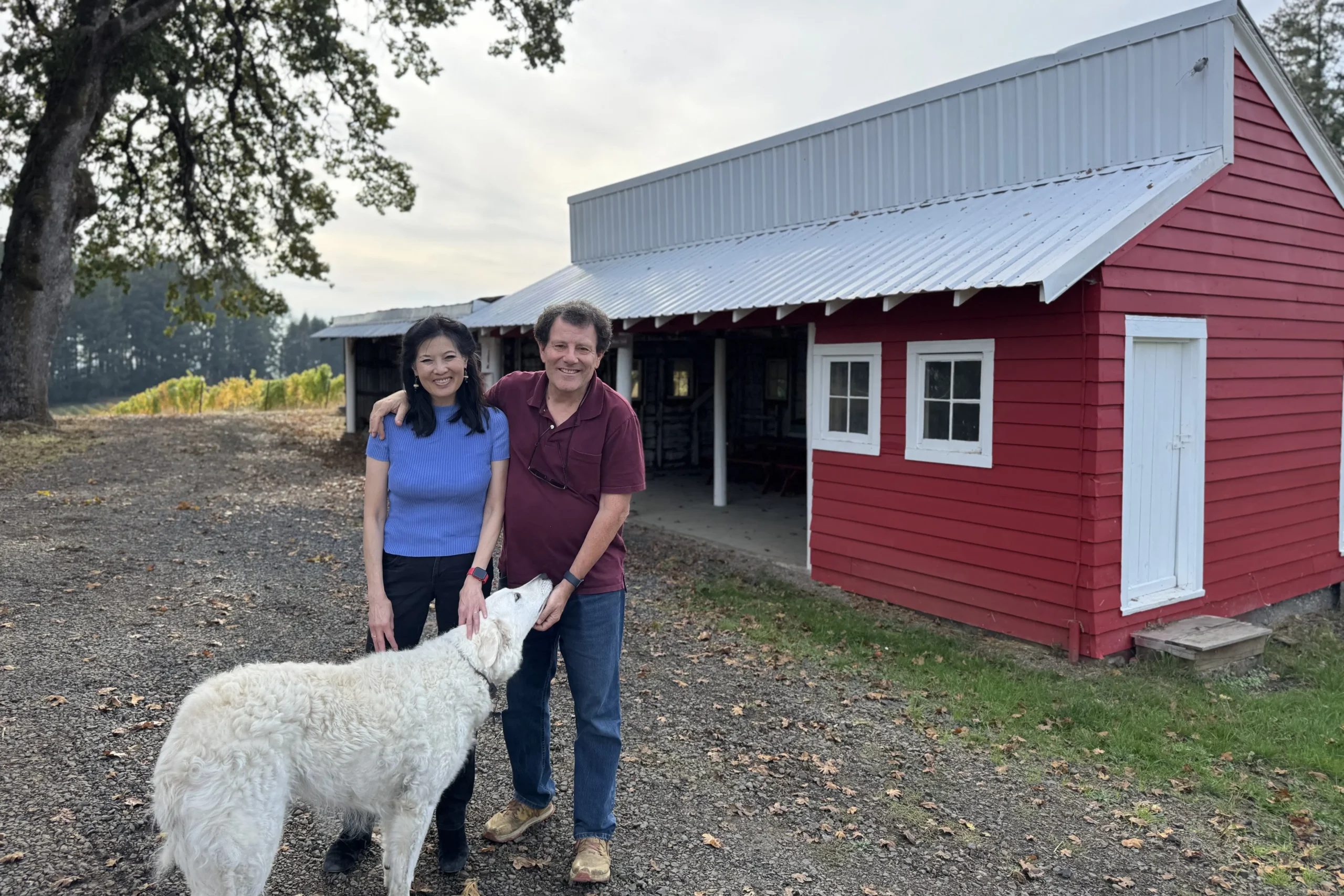 Kristof Farms is a family-run vineyard and orchard north of Yamhill. The farm has been in the Kristof family for more than half a century: The patriarch was Ladis Kristof, a World War II refugee whose family spied on the Nazis in Poland and Romania, was caught and eventually managed to flee and make his way to Oregon in 1952. Ladis and Jane Kristof raised their son, the New York Times columnist Nicholas Kristof, on the farm, and today it is managed by Nicholas and his wife, Sheryl WuDunn, the first husband-wife couple to win a Pulitzer Prize for journalism. Nick and Sheryl, together with their three children, produce small-lot estate Pinot Noir, Chardonnay, Rosé and award-winning hard cider while preserving the property as a wildlife corridor. Rooted in history, resilience, and stewardship, Kristof Farms is about caring for the land as well as about crafting exceptional wines.